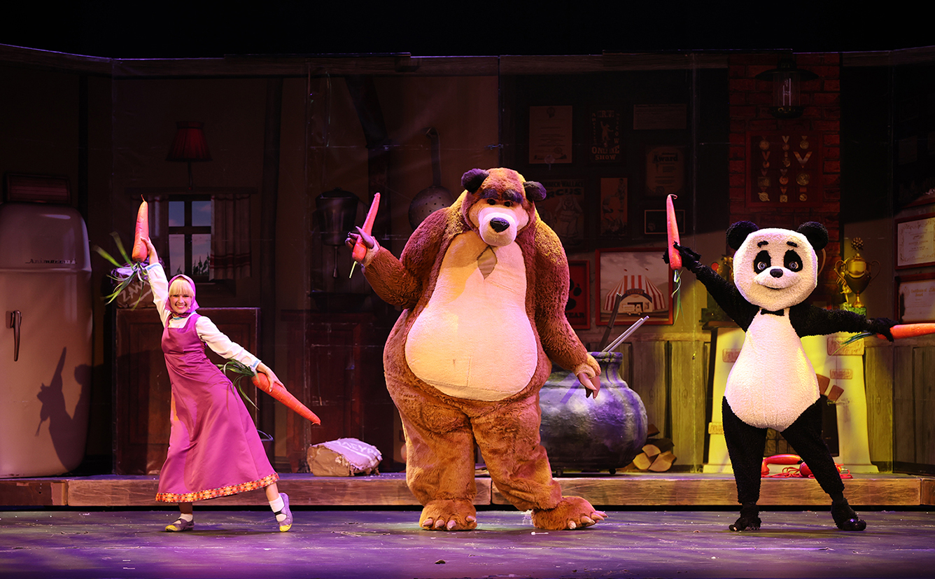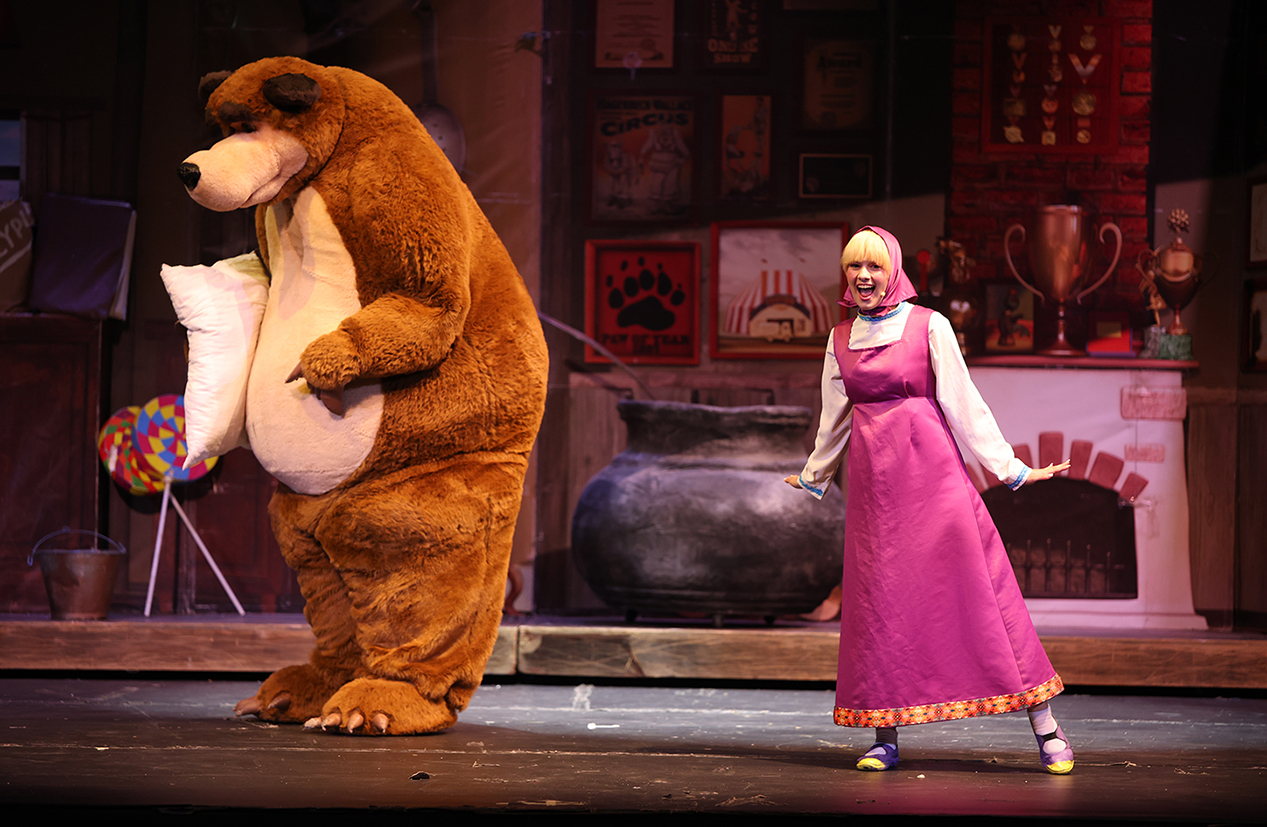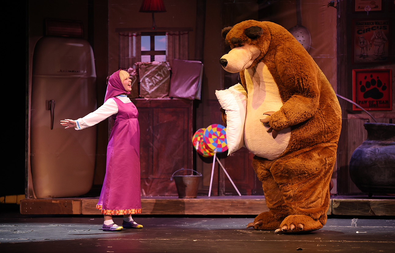 «Η Μάσα και ο Αρκούδος, μια μεγάλη γιορτή» η επίσημη θεατρική παράσταση, ζωντανεύει τον μαγικό κόσμο της παγκόσμιας επιτυχημένης σειράς κινουμένων σχεδίων. Με τα αυθεντικά κοστούμια του εξωτερικού.
